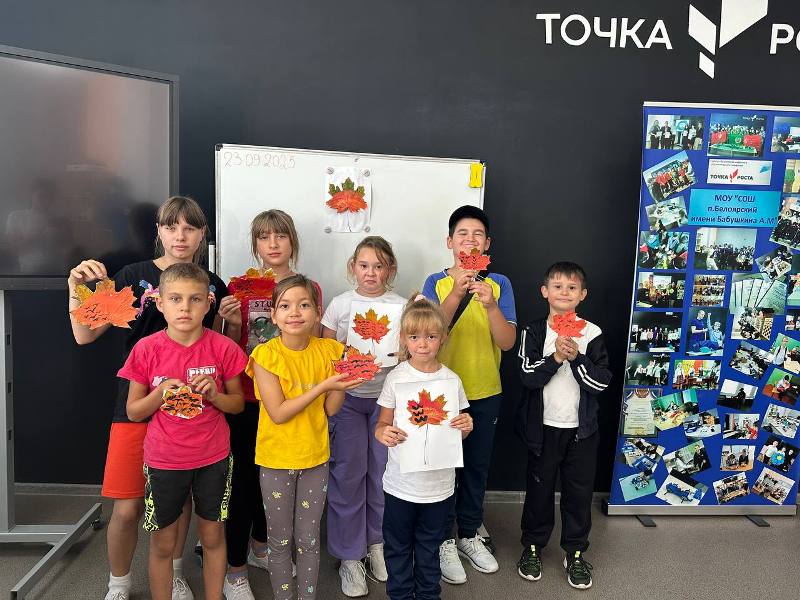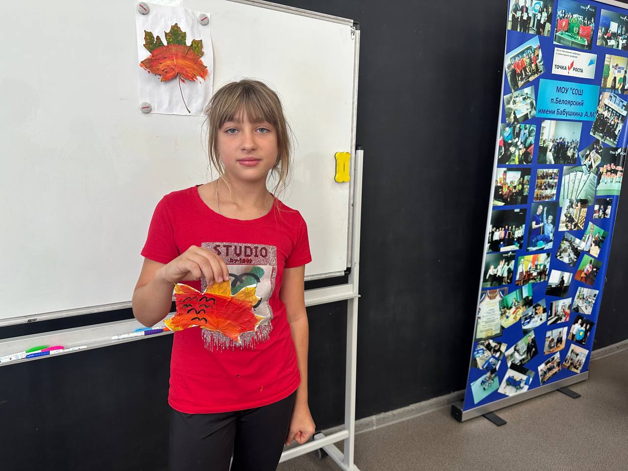 ? 23.09.25 Наши талантливые воспитанники объединения «Творческая лаборатория» на базе Центра образования цифрового и гуманитарного профилей "Точка Роста" МОУ "СОШ п. Белоярский им. Бабушкина А.М." проявили настоящий творческий потенциал! ?? Под руководством педагога дополнительного образования Дзюбан К.С. ребята освоили интересную и необычную технику рисования на кленовых листьях. В результате получились потрясающие работы, наполненные яркими красками и фантазией.